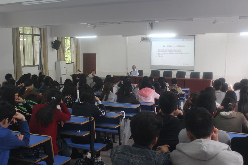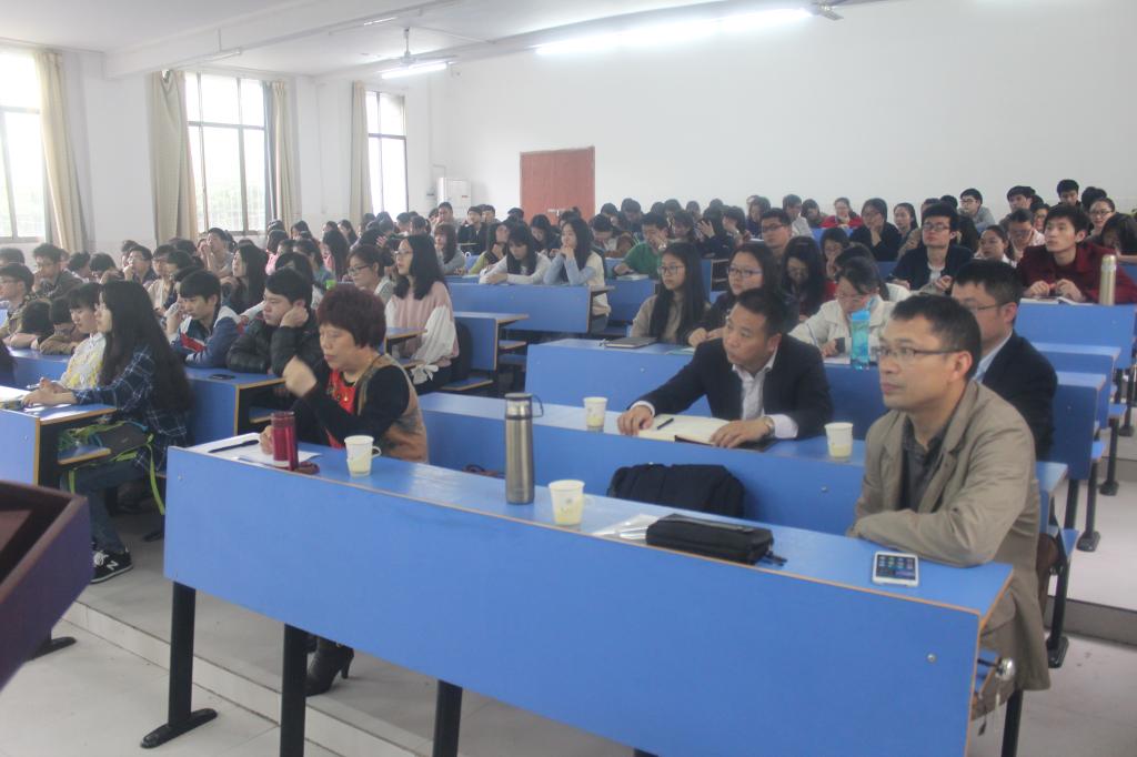 4月12日下午,由校人文社科处、经济管理学院联合主办的以“学习金融知识、开创财富人生” 为主题的金融知识讲座在MBA中心一楼学术报告厅举行,副院长阳秋林主持。省建设银行产品创新与管理部总经理李振球、省建设银行衡阳分行蒸湘支行行长万荣,院党委书记谢四平、副院长阳秋林、副书记谭建跃出席,经管学院近200名师生参加了讲座会。