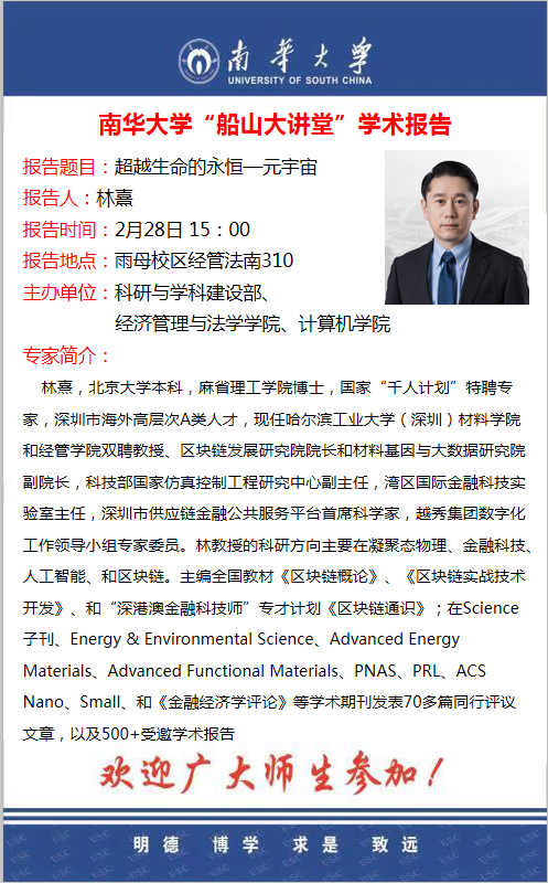 哈尔滨工业大学(深圳)林熹教授应邀作客南华大学“船山大讲堂”学术报告