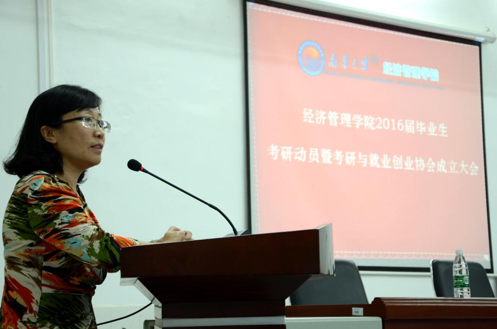 会议伊始,苏玲老师对2015届毕业生的考研情况进行总结,并围绕“全心全意为考研同学服务”这一宗旨对考研与就业创业协会的工作进行较全面的介绍。
