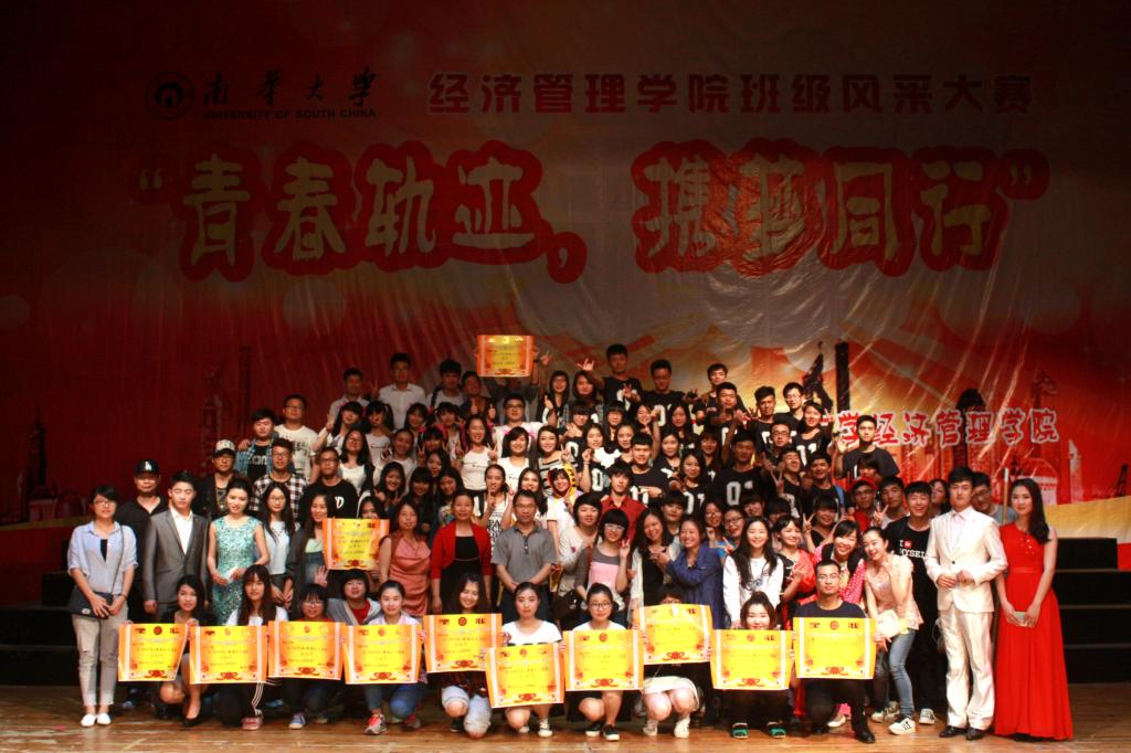华灯闪耀,欢呼连连。由各参赛者班级共同选送的T台秀,充满朝气、个性鲜明,模特们以优雅的姿态生动展示着各班的独特风采,为比赛渲染气氛。而后,比赛正式开始。本次比赛形式新颖、内涵丰富,班级风采PPT展示与其达人秀表演相得益彰。伴随着美妙的背景音乐,别具一格的PPT温馨展现,一张张照片雕刻了成长的记忆,一条条朴实的箴言诉说了无悔的青春,一幕幕的前进瞬间演绎了经管班级的千样风采。第二个部分的达人秀形式多样、引人入胜。大合唱表演《明天会更好》共同唱出了经管学子对美好明天的憧憬,《we are one》、《燃烧吧,class》,《bang bang》等劲爆的歌舞串烧为青春律动,而形式新颖的杯子舞则形象展现班级同学的智慧和创造力。与此同时,幽默的小品、精彩的舞台剧亦是一大亮点,其通过利用各种奇特的道具进行巧妙反串,赢得了观众热烈的掌声。