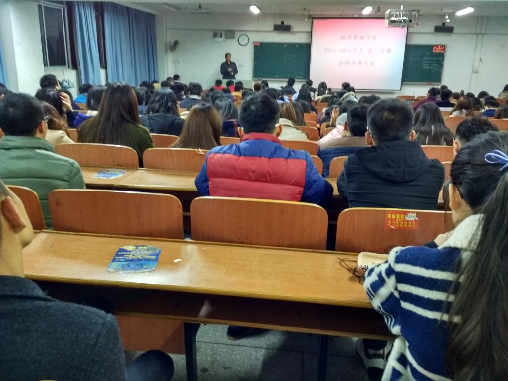 然后,唐云波老师对学工室人员调动及各辅导员的分工情况进行了介绍。苏玲老师宣读了2015-2016学年度第一学期学院综合表彰文件。江柯桥老师通报了上学期期末考试违纪处分文件。