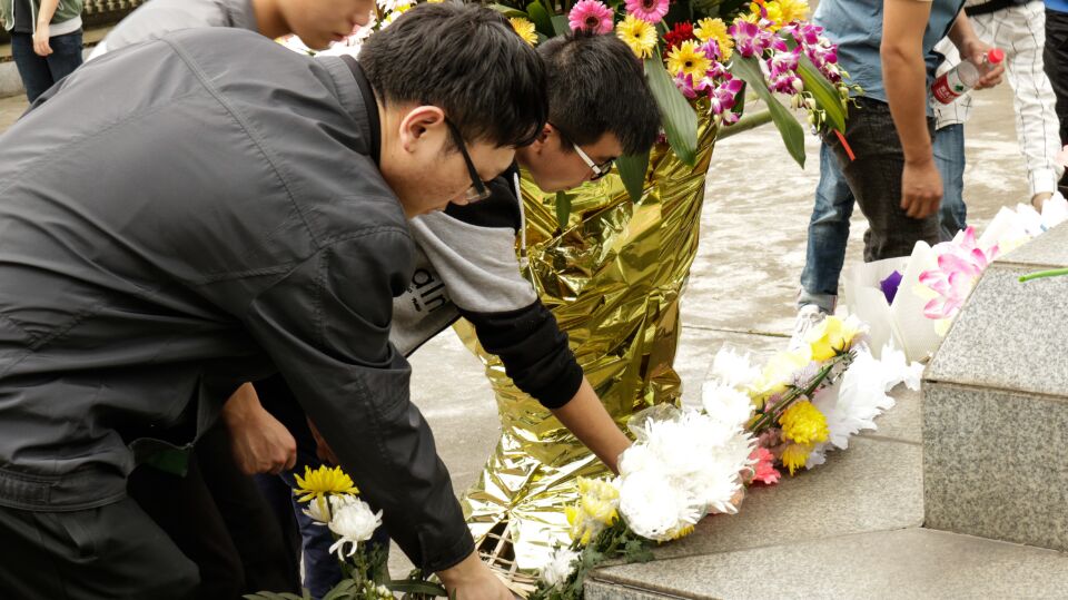 高耸的纪念碑矗立在广场中央,要高高的仰起头才能看得清那镌刻的“衡阳革命烈士纪念碑”的俊逸潇洒的行书文字。我们站成了三排,念悼词的同学在队伍前用低沉的嗓音缅怀着先烈,我们持着或白或黄的菊花静静的立在纪念碑前,空气宛若静止,风也似乎低落了,唯余下一腔哀愁与平静的心。默哀,默默的哀悼,是生者的祝福,是后来人的敬仰。