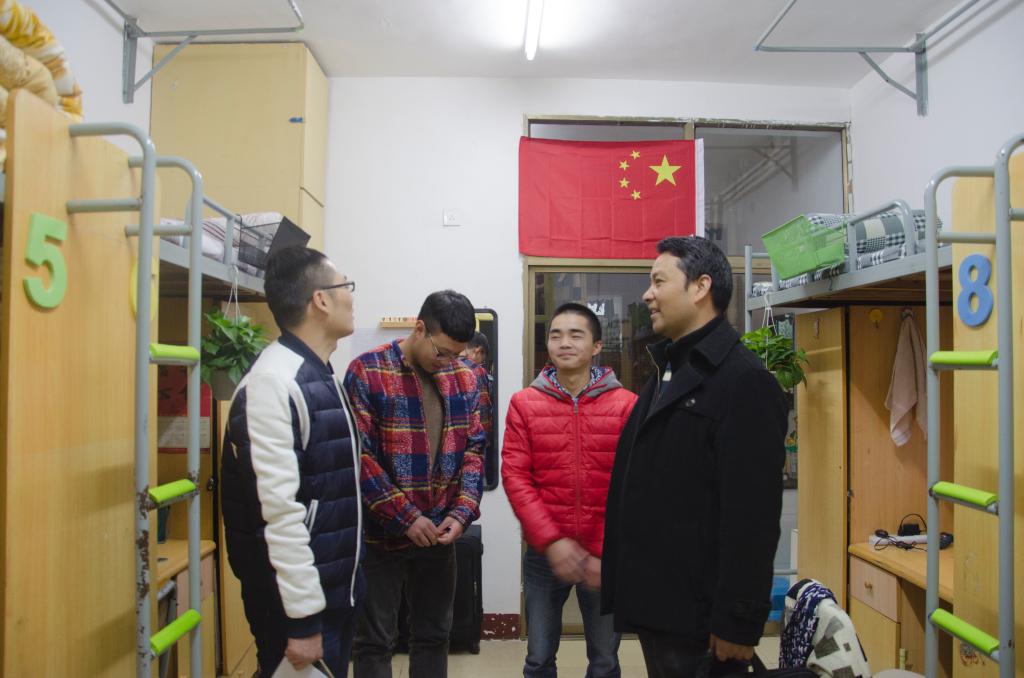 晚上8点,谭书记一行开始走访弘辰学生公寓5栋。“同学们好!”谭书记、老师们面带微笑,亲切地问候学生们,学生也对老师们的到来表示十分欢迎。谭书记、唐老师细心询问了学生的学习、生活等方面的情况,与学生们进行了亲切的交流。同时,团委书记张璇、就业专干苏玲、冯国涛等老师关切地询问了毕业生就业、毕业后发展的情况,并对他们提供了一些建议指导。一向关注学生心理状况的唐小芳老师也表示希望学生们在学习生活中能保持积极向上的心态,遇到问题及时跟辅导员反映沟通。谭书记、老师们所到之处都是欢声笑语,现场气氛十分融洽温馨。当天,学院老师还走访了多个学生宿舍。