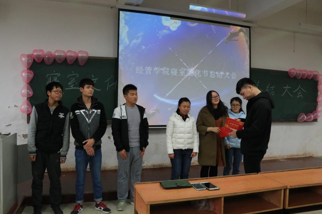 总结会议上,江柯桥老师为尚学园四栋305、304、402、笃行园一栋440等六个寝室颁发了优秀寝室奖,宿管部部长李倩为尚学园四栋的614、407、418、601等PPT优秀制作寝室颁发了优秀奖项。随后获奖寝室代表展示并讲解了其寝室文化的PPT,展示了温馨、友爱、文明的寝室风采。
