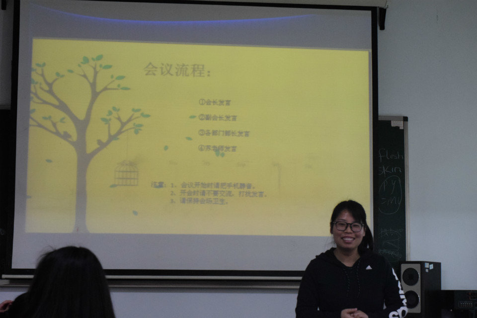 会议最后,苏玲老师提出要我们成为“有思想,有目标,会生活,能执行”的优秀协会干部、优秀大学生,并且鼓励大家创新实践,养成良好的生活习惯,树立积极的生活目标,建设团结奋进、积极向上、热忱奉献的优秀协会。