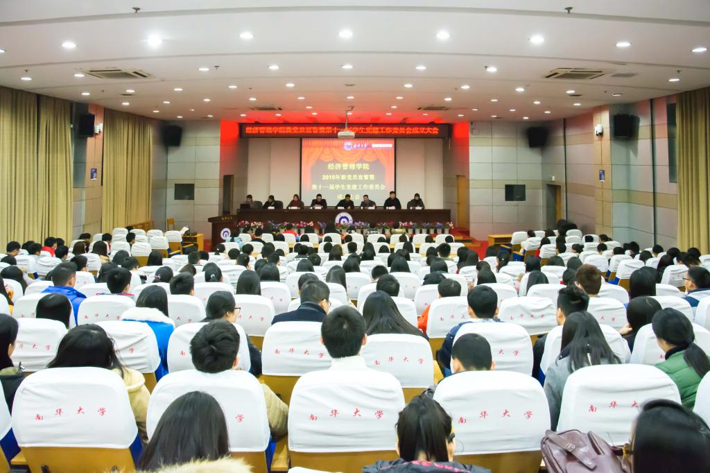 会议伊始,全体肃穆起立,奏国歌。在雄伟庄重,慷慨激昂的国歌声中,大会正式开始。唐云波老师宣读学院四个党支部新党员名单。院团委副书记江柯桥带领新党员宣誓。其后,新党员会计149班朱虹、老党员代表人资131班李希先后上台发言。苏玲老师宣读第十届红色教育表彰文件和第十一届学生党建工作委员会成立文件。