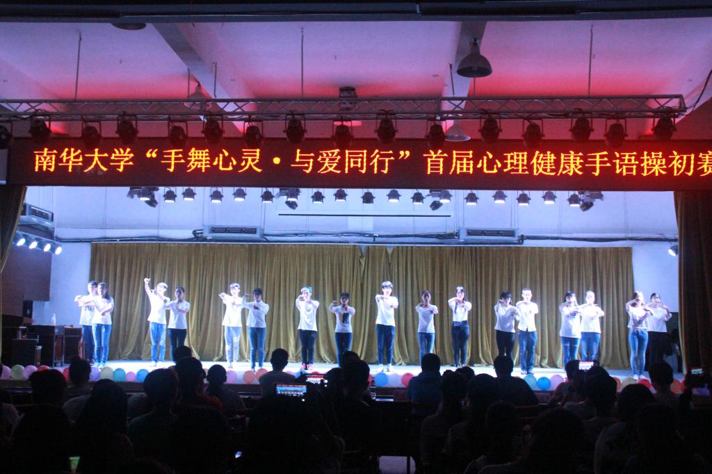 5月15日晚,南华大学“手舞心灵,与爱同行”首届心理健康手语操初赛于雨母校区新食堂四楼举行。到场嘉宾有经济管理学院江柯桥老师,校心协会长彭良峰,副会长宋俊雄,经济管理学院学生党建副书记毛刘意,船山学院团委学生会副主席吴映明,机械工程学院学生会主席王若愚。同学们热情澎湃,全场座无虚席。