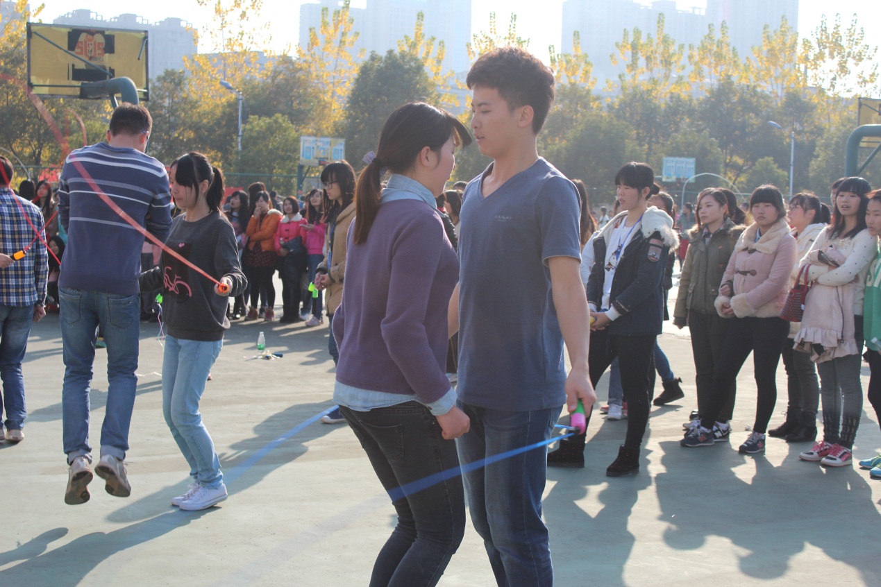 为响应“走下网络,走出教室,走向操场”的倡议,大力开展阳光体育活动,12月13日下午,我院学生跳绳比赛在致远园网球场举行。本次活动由经济管理学院团学会主办,团学体育部承办。学院2012级、2013级学生在单人跳、双人跳、跳大绳等环节中展开激烈比拼。