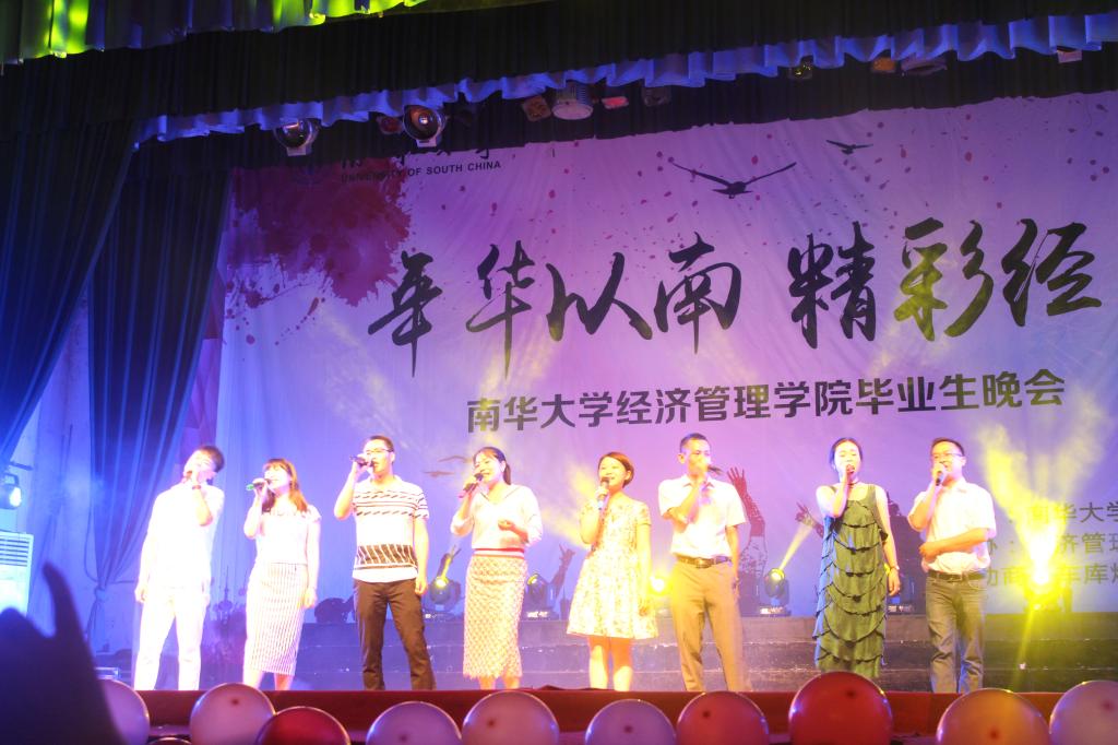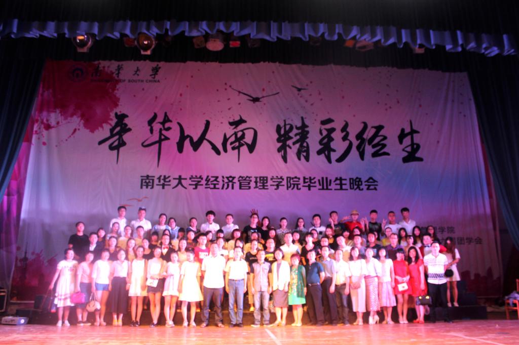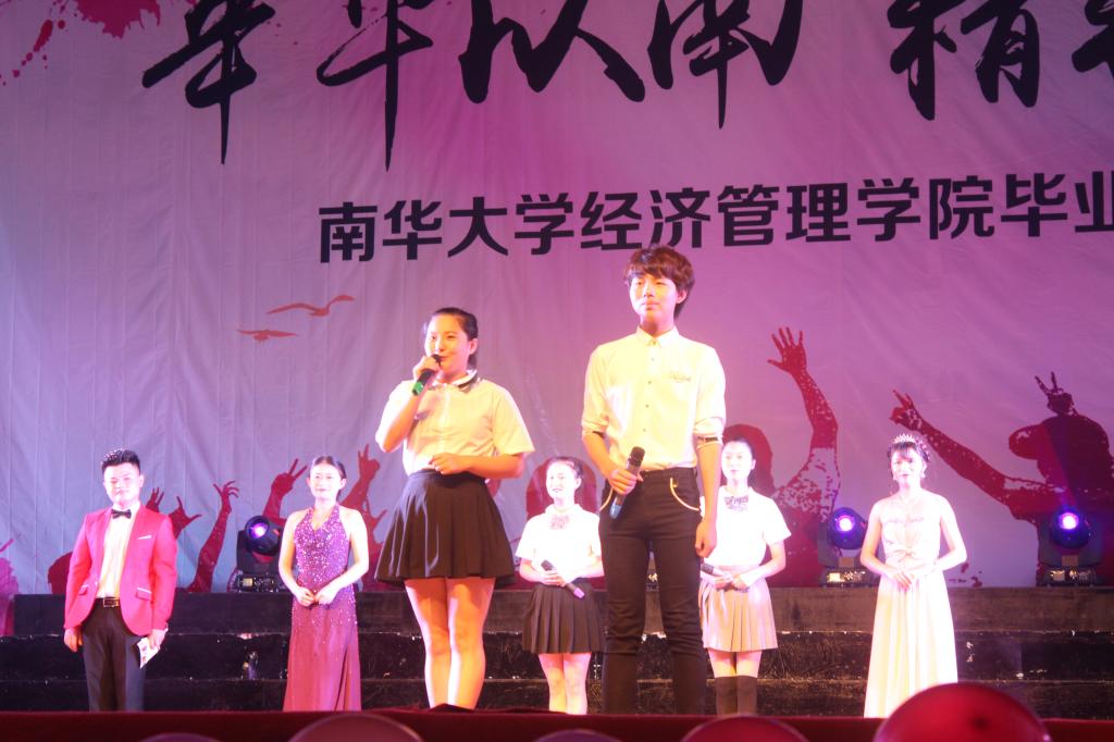 6月6日晚,“年华以南,精彩经生”南华大学经济管理学院欢送2016届毕业晚会于南校大礼堂隆重举行。校学工部副部长廖迎春、校团委副书记刘文君、院党委书记谢四平、院长王铁骊、副院长阳秋林、副院长刘萌芽、院党委副书记谭建跃、环安学院党委副书记李照出席本次晚会,与来自各学院的1000余名师生共同观看了演出。