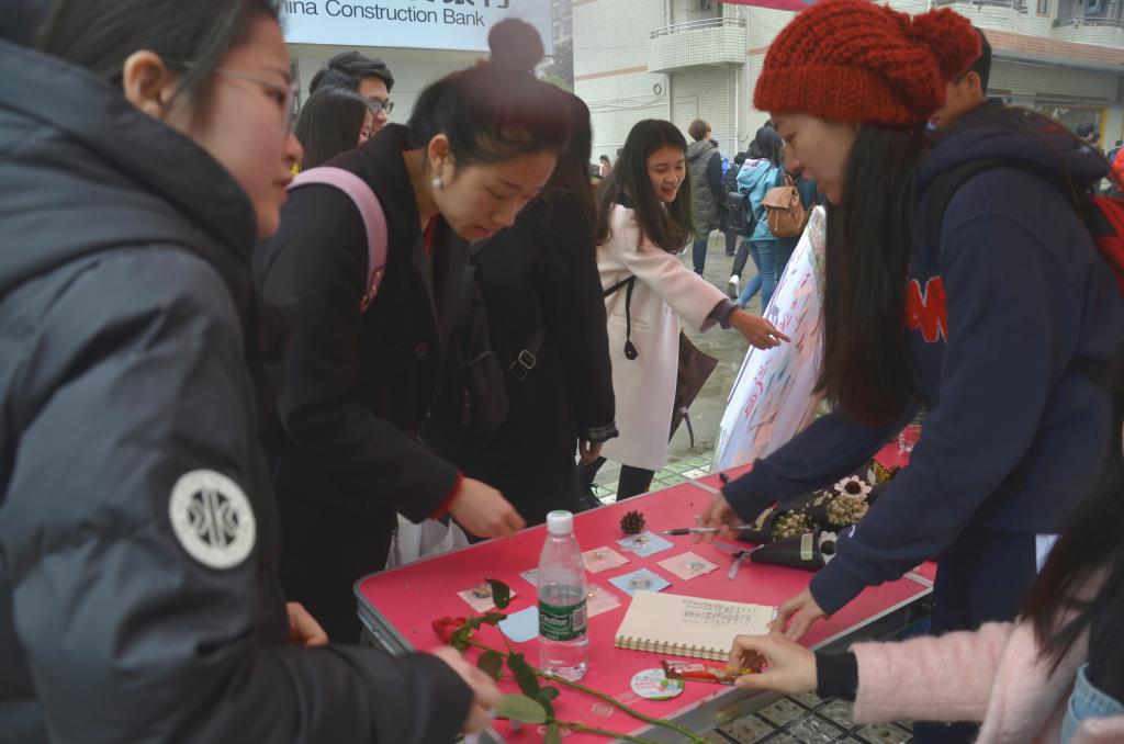 细雨绵绵,热情不减。本次活动结合线上线下双互动,全方位为经管女生创造浪漫机会、送出温暖。线上集赞活动,为女生送上贴心的小饰品、护肤品、鲜花等,各具特色,人气爆棚。线下“心愿便利贴”活动,女生们在便利贴上纷纷写下自己的心愿,贴在展板上,等待有缘男生替其实现。活动受到很多女生的支持和喜爱。