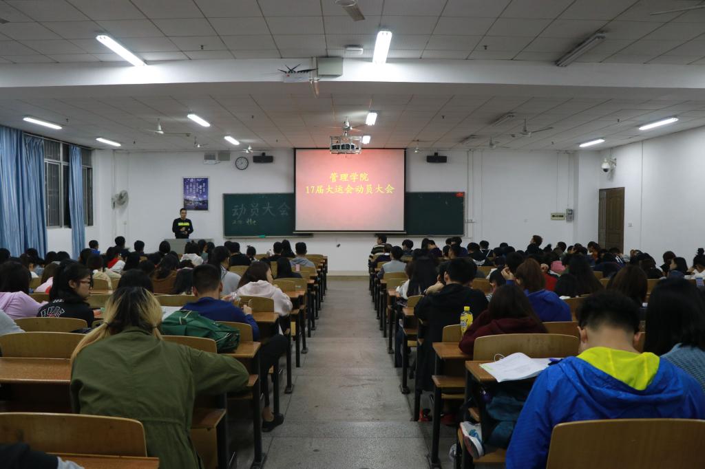 12日晚,我院于一教111成功召开17届大运会动员大会。出席本次会议的有:党委副书记谭建跃,学工室主任唐云波,辅导员老师苏玲、张璇和欧雷,学生会主席团成员、14至17级全体运动员以及15、16级主要学生干部等。本次大会由唐云波主持。