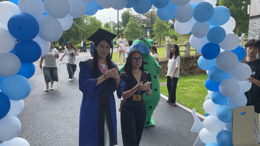 踏入青春集市,毕业序章正式开启。在鲜花签到墙处,以青春寄语换花簇,留下专属毕业印记;移步照片墙打卡区,与同窗共忆四载笑泪交融的片段,重拾珍贵过往;参与套大鹅互动,在欢笑声里收获满载青春气息的趣味小礼 ;书写心愿的纸飞机,将携愿翱翔,划过毕业天空;投壶游戏中,直指筒心,寄寓前路顺遂…在茶歇区,精致点心与清凉饮品已备妥,补充能量的同时,一起开启这场毕业快闪的温暖序章!