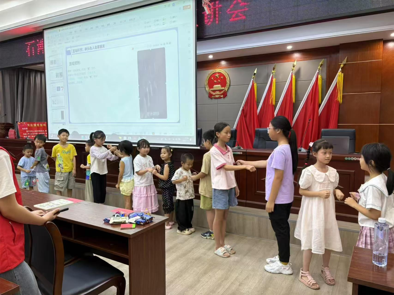 针对防性侵和反校园霸凌两大主题,团队分别采用了动画视频与真实案例进行教学。在讲解防性侵时,通过简洁生动的视频语言强调隐私保护及法律对侵害者的严惩,并组织场景模拟训练孩子们识别危险与自我保护;在反霸凌教育中,则展示真实案例引导学生思考讨论,详细阐释霸凌的法律界定与后果,帮助他们树立“不施暴、敢维权”意识,明确法律求助途径。