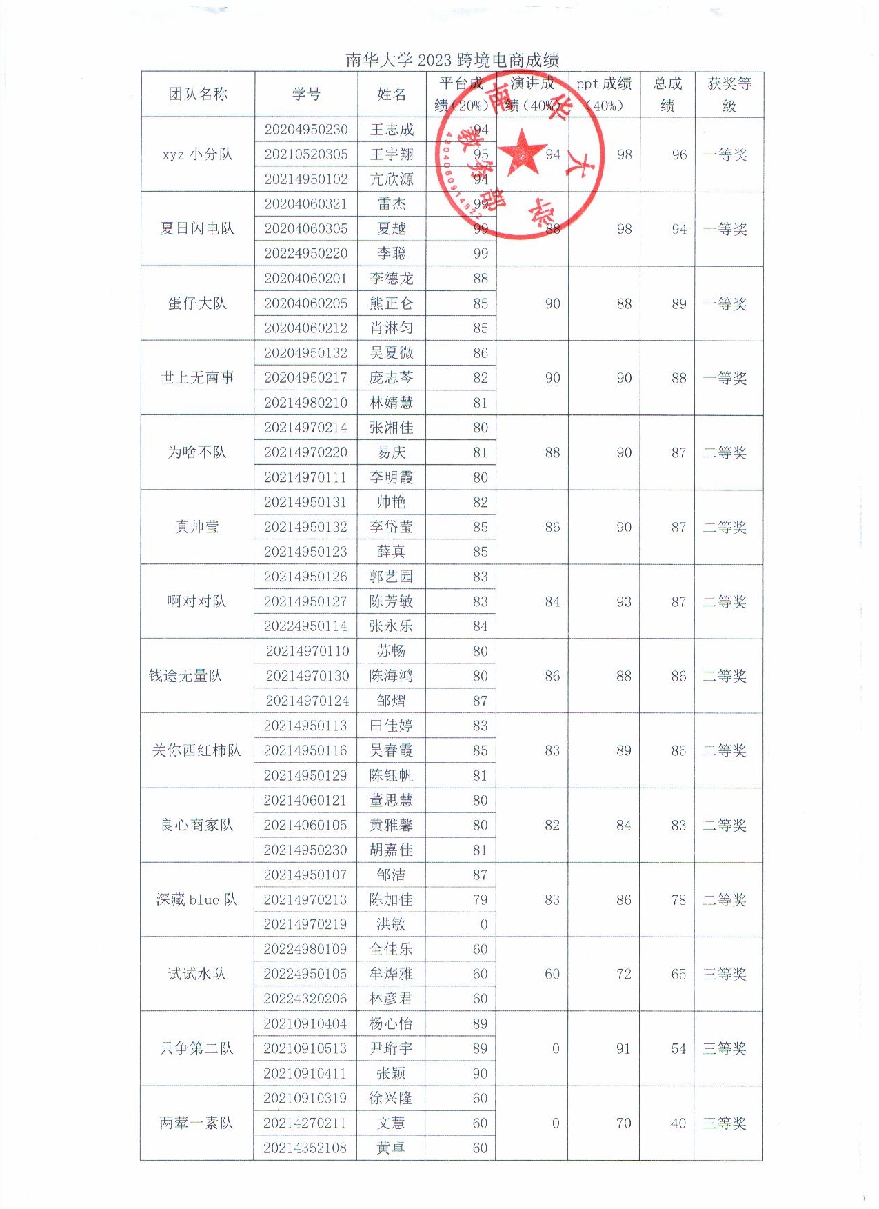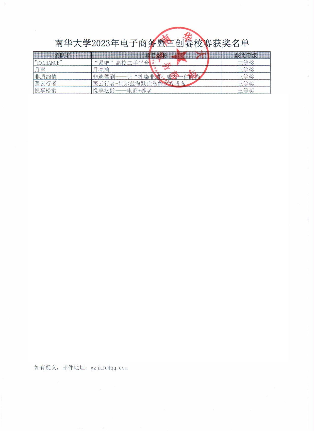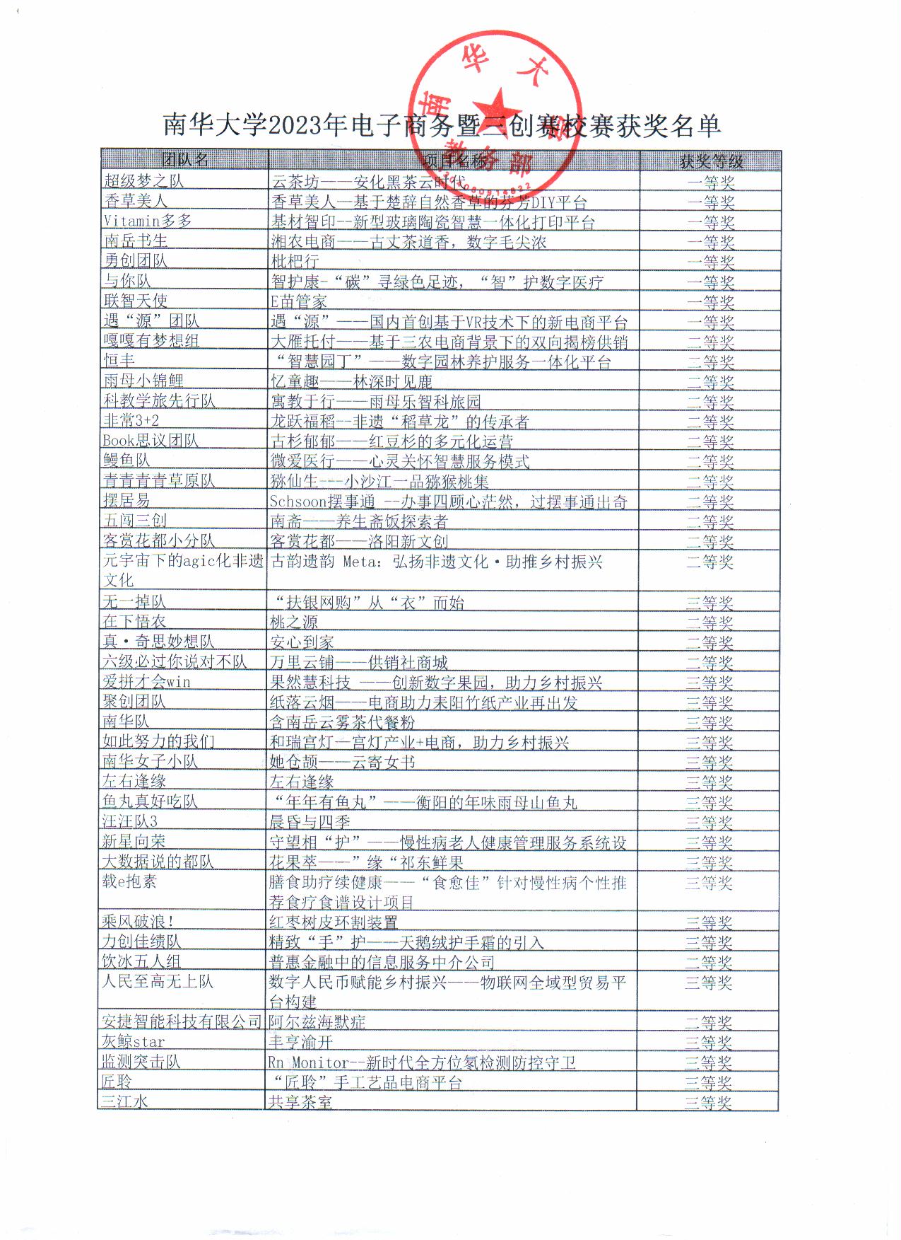 南华大学2023电子商务暨三创赛相关获奖名单