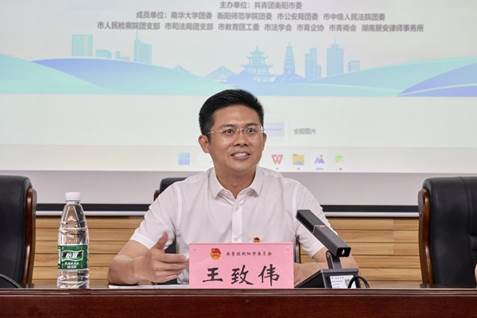 会上,团市委书记王致伟发表讲话。王致伟指出,此次活动凝集了社会各界力量,筹集社会各方资源,是一项意义非凡的工作。一是彰显法律精神。通过加强对乡镇中小学的普法教育,为青少年健康成长保驾护航。二是疗愈社会痛点。侵犯青少年权益的案件出现,原因之一在于偏远地区的留守儿童不懂法、不敢维权,而普法志愿服务队作为第三方力量,能够将法律的光芒照到偏远地区,同时也有利于震慑当地黑恶势力。三是实现个人价值。通过普法志愿服务活动,能及时让受侵害青少年感受社会的关爱,避免在心中种下仇恨的种子,斩断“恶”传递的链条,从而有助于社会稳定。