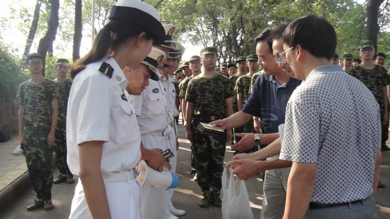 随后,院领导和教官们一一握手致意,并送上了慰问品。慰问活动在教官和同学们的热烈掌声中结束。相信在院领导的高度重视下,在全体军训教官的辛勤付出中,2013级新生同学们必将以更加饱满的热情和昂扬的斗志顺利完成军训任务。