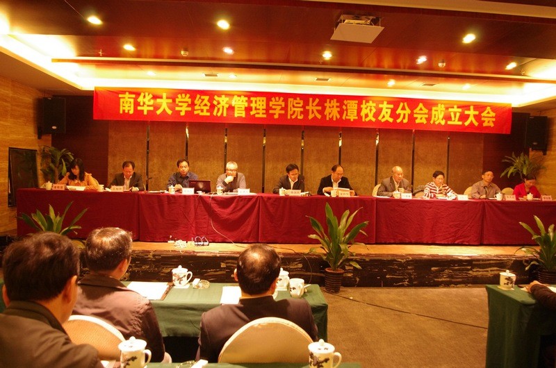 10月26日上午,南华大学经济管理学院长株潭校友分会成立大会在长沙隆重召开,湖南省核工业建设有限公司总经理吴扬国、党委书记王旭升,南华大学总会计师陈国民,南华大学原副校级督导袁德平,MBA中心主任肖东生,经济管理学院学院老领导任德曦,经济管理学院院长周晓东、党委书记张天成、党委副书记廖迎春、副院长刘文君出席大会,大会由湖南省核工业建设有限公司办公室主任薛珊主持。