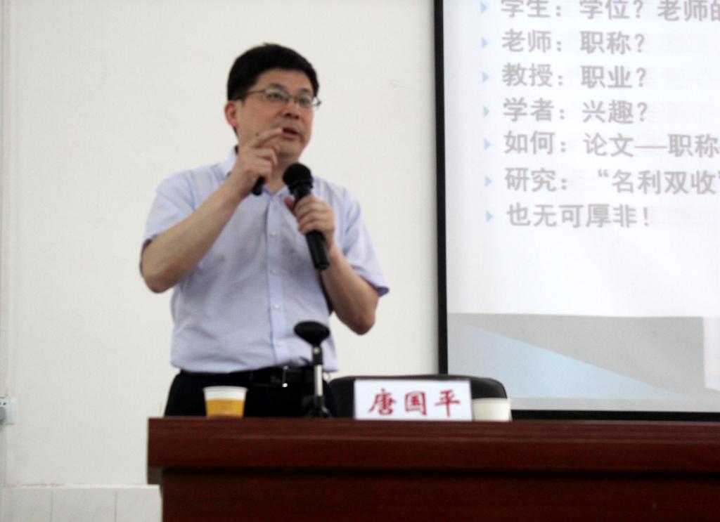 6月16日下午,中南财经政法大学会计学院博士生导师、MBA学院院长、环境资源会计研究中心主任,中国会计学会理事唐国平应邀来经济管理学院讲学交流。副校长陈国民与唐国平教授进行了会面,感谢唐国平对学校经管专业学科建设的关心和支持。院党委书记谢四平、副院长阳秋林出席,会计系老师及研究生、本科生参加报告会。报告会由阳秋林副院长主持。