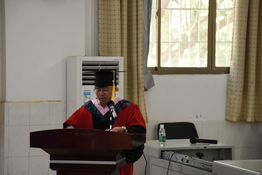 学院学科带头人原校党委书记邹树梁在讲话中对我院所有毕业研究生圆满完成学业表示衷心的祝贺,他提到在剑桥大学学习时有人问他做学问的最高境界是什么,他当时回答是执着,经过时间的积累,他觉得做学问最大的境界是“德”。人要有一颗感恩的心,“雄关漫道真如铁,而从迈步从头越”,生活有多艰难我就有多坚强,要对生活有激情,要热爱,要自信,待人友善。