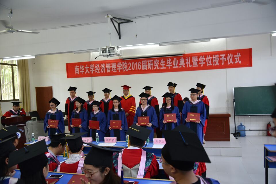 典礼上,研究生院副院长刘春宣读了学位授予名单,副院长戴剑勇宣读了优秀毕业生名单。本年度共有65名研究生圆满完成学业,其中陈姣等46名同学硕统招硕士学位、李振钢等16位同学获得统招工程硕士学位、刘国安等3位同学获得在职工程硕士学位。王谦、方修园同学由于品学兼优、表现突出,荣获湖南省普通高校2016届优秀毕业研究生称号。林强、牟腊春同学也由于优异的表现被评为我校2016届优秀毕业研究生。