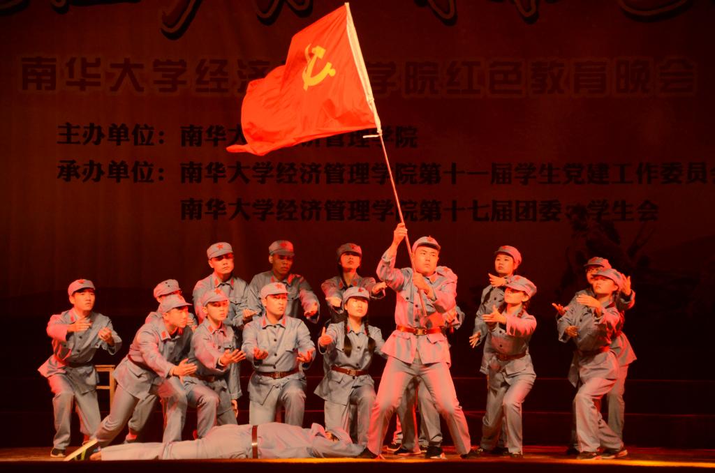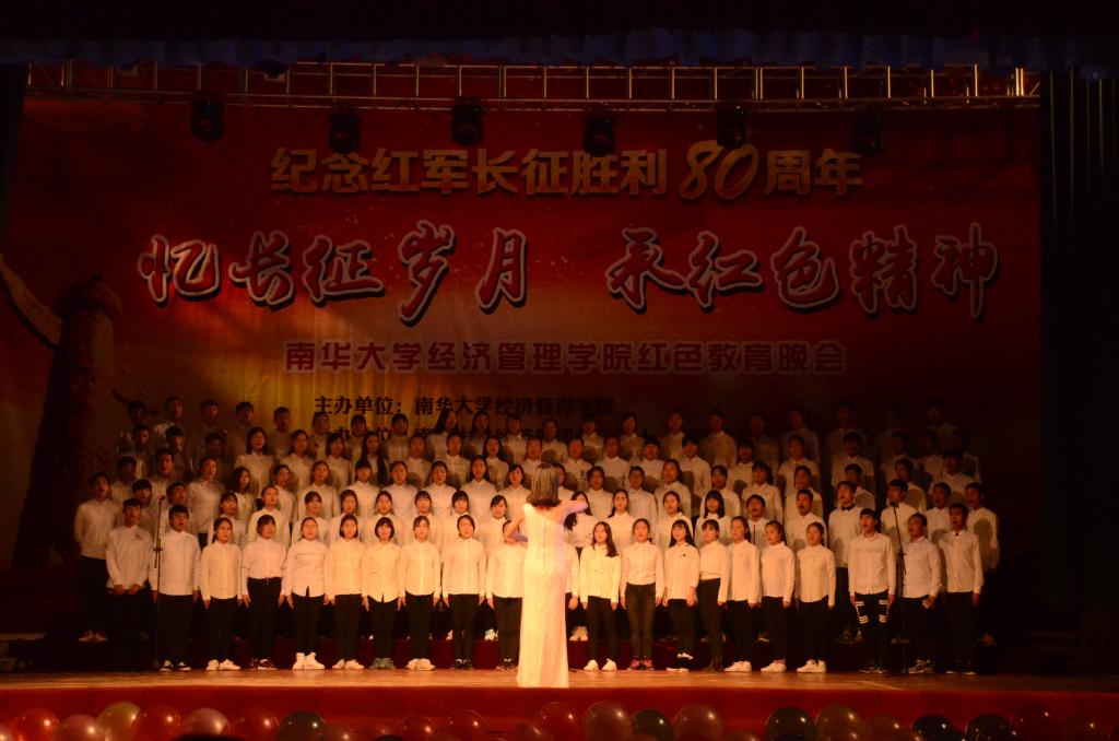 本次晚会由南华大学经济管理学院主办,由经管学生党建委员会,经管团委,经管学生会联合承办。晚会以一首激昂壮阔的《七律长征》大合唱拉开了帷幕,营造出浓厚的红色氛围。预备役的擒敌拳刚劲有力,气势非凡,既展现出现代军人的魅力,又追忆了红军军魂。当斑斓的灯光熄去,一束白光打在拉起的幕布上,经济管理学院二支部带来影子创意《铁血长征》。他们用投射的影子演绎着红军长征出发送别亲人、遵义会议、巧渡金沙江、强渡大渡河等情景,全场肃穆,黑与白的呈现发人深省。小品《九儿》《军民情》、歌曲《红色摇滚》、快板加舞蹈《传承》等精彩的节目以不同的方式与创意,展示出了他们的红色情怀,全场不时响起热烈的掌声。