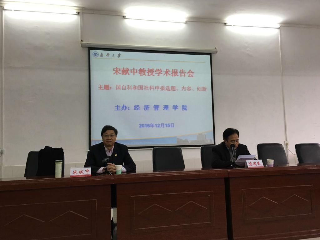 为进一步推动我校科研工作的开展,12月15日下午,学校邀请暨南大学副校长宋献中教授来校作“国家基金项目申报选题、内容、创新”专题报告。报告会在红湘校区MBA一楼举行,副校长陈国民主持报告会。学校相关科研部门老师、各学院教师代表以及学生代表200余人聆听了报告。