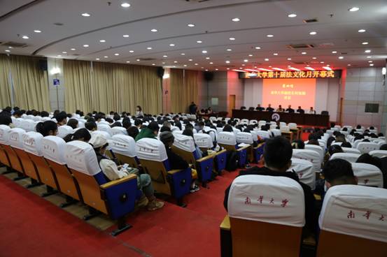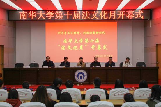 开幕式在激昂的国歌声中拉开序幕。傅华丽致开幕词,她指出,开展法文化月系列活动旨在让全体师生学习法治精神,在实践中学法、守法、懂法、用法,进一步加强学校法制教育,形成学校依法治校、教师依法执教、学生遵纪守法的良好氛围。她表示:“我校开展法文化月系列活动,既是响应十九大对国家法治建设的要求,也是广大师生深入学习了解法律的良好机会。”接着,学生代表刘超凡发言,他追根溯源,探索中国古代传统法律文化,又面向未来,立足长远,放眼我国的法制建设。他说:“我们要明法晰理、明法笃行、明法正身,时刻将法律内化于心,外化于行,为推进社会主义法治化进程贡献出自己的青春和力量,勇当知法、学法、守法、用法的当代大学生,共同创建更美好的南华大学!”