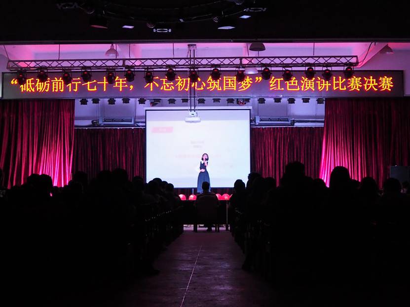 为实现中华民族伟大复兴接力赛跑,提高南华学子的爱国热情,丰富学生们的课余生活,11月4日晚,南华大学beats365唯一官方网站“砥砺前行七十年,不忘初心筑国梦”主题演讲比赛决赛于雨母校区新食堂四楼如期举行。本次演讲比赛的评委小组由院党委副书记谭建跃及学工室全体辅导员、教师组成,十组参赛选手经过了初赛的严格选拔,从激烈的竞争中脱颖而出。