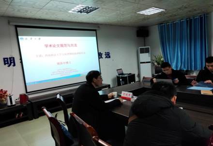 为进一步提升研究生论文写作水平,2019年12月1日,公共管理系在我校红湘校区招生就业处一楼办公室举行“学术论文规范与方法”专题报告会。我院2011级本科优秀校友,西南政法大学法文化博物馆助理研究员周泽中博士应邀回母校主讲,公共管理学科带头人彭建军教授主持,公共管理系教师和公共管理系在读研究生、MPA教育中心2019级研究生参加了报告会。