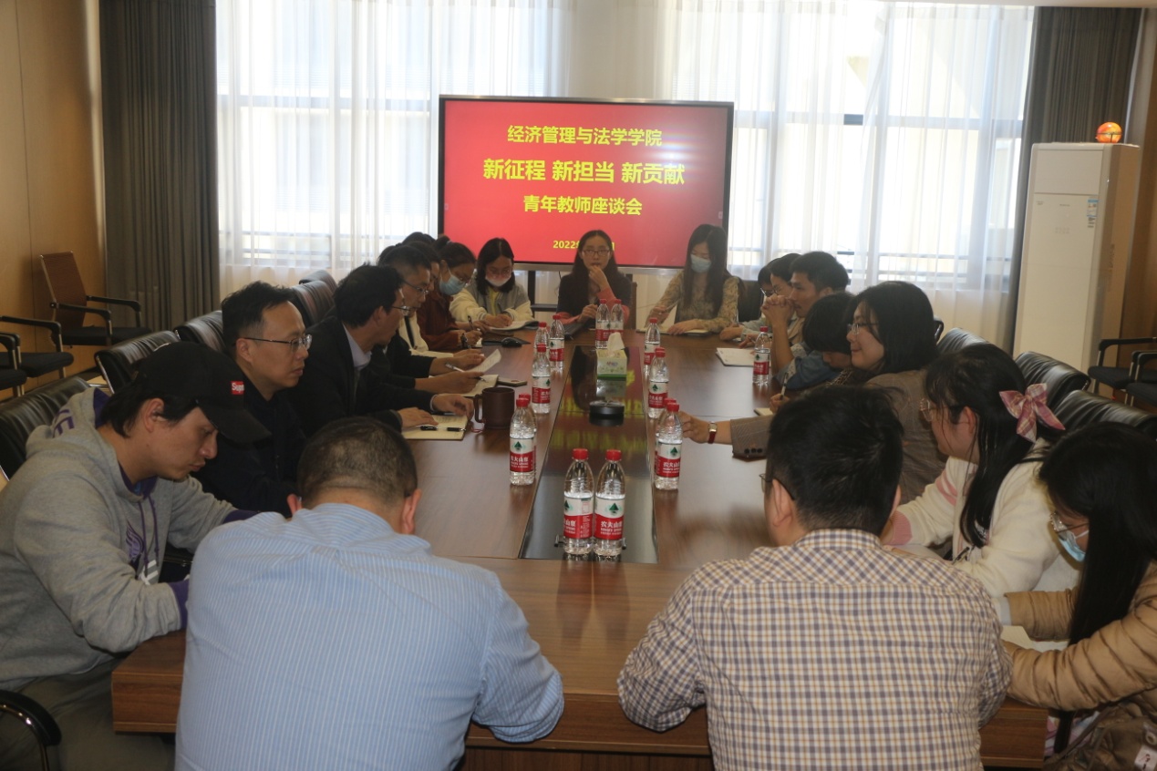 在会上,每位青年教师结合各自工作、生活等方面畅所欲言,并对学院的建设和发展提出宝贵建议。工商管理系王曦博士代表青年教师感谢学院领导对青年教师的关注、关心和厚爱,通过历练,自己得到了迅速成长,表示一定要按照新标准新要求,充分落实立德树人根本任务的关键课程作用,用党的百年奋斗历史坚定理想信念,努力讲好学生终身受益的课程,自觉承担起筑魂育人的历史重任。