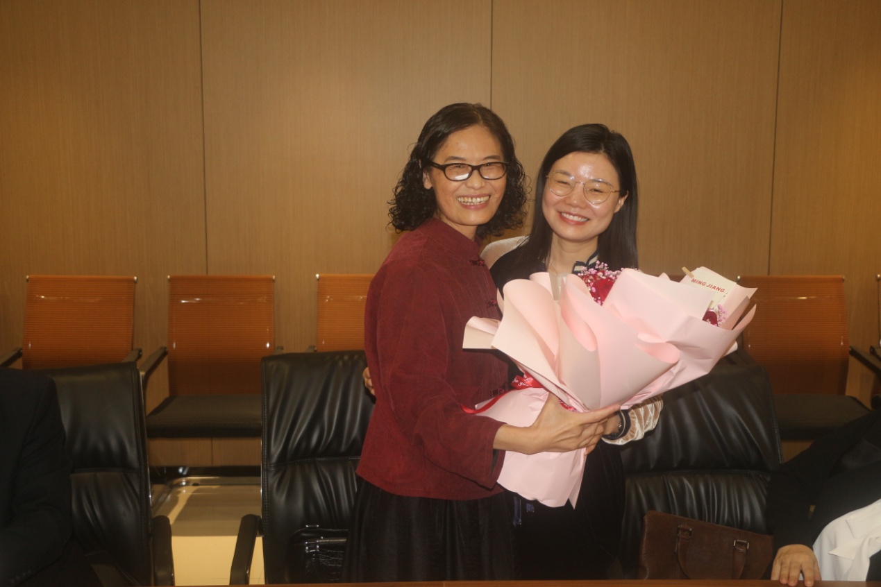 李玉琼代表学院向曾为群老师从教四十年来对学院发展做出的贡献表示衷心的感谢,并感慨地说,人生很快,每一段都有精彩和压力,曾为群老师给大家留下了一个优雅、知性、有品性的美好形象,一个友善、大爱、奉献、责任心的教师楷模,一个平淡、真切、健康、快乐的家庭偶像。彭建军指出,学院永远是各位老师的家,光荣退休是人生幸福生活的新起点,诚挚祝福曾老师在退休后的生活更加充实,更加美好,更加健康,更希望曾老师能够继续关心和支持学院各项事业的发展,积极为学院发展建言献策,用自己丰富的经验和阅历书写人生新的篇章。
