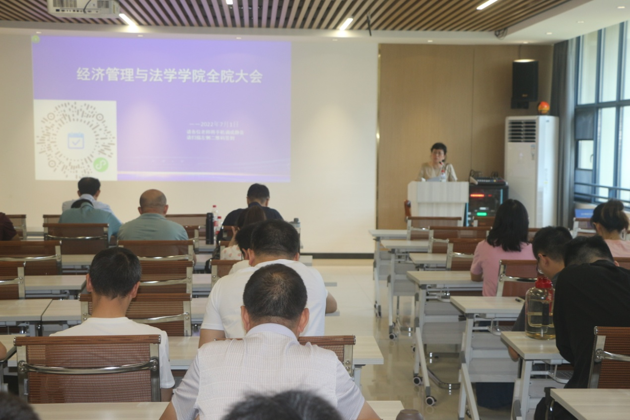 会上,李玉琼从疫情防控工作常抓不懈、本科教学有序有效、研究生教育全面加强、科研平台科研成果成效显著、学术交流取得战略新优势、学科建设水平与科技创新能力取得历史突破、人才和师资队伍建设工作取得新成绩、学生工作稳定又有创新、社会服务迈开实质性步伐、民生保障服务能力全面提升等方面对本学期工作进行了梳理。李玉琼指出,本学期对学院来说是一个非常特殊的学期,时间节点敏感,大事要事叠加,工作节奏紧张,广大干部职工勇挑重担,不畏艰难,敢于担当,特别是在统筹疫情防控和学院事业发展的双重压力下,取得了令人欣喜的成绩。她对暑假期间需要开展的招生录取工作、双一流学科建设工作、管理服务工作、教学单位工作、科研和课题申报工作、疫情防控和安全稳定工作等进行了安排。