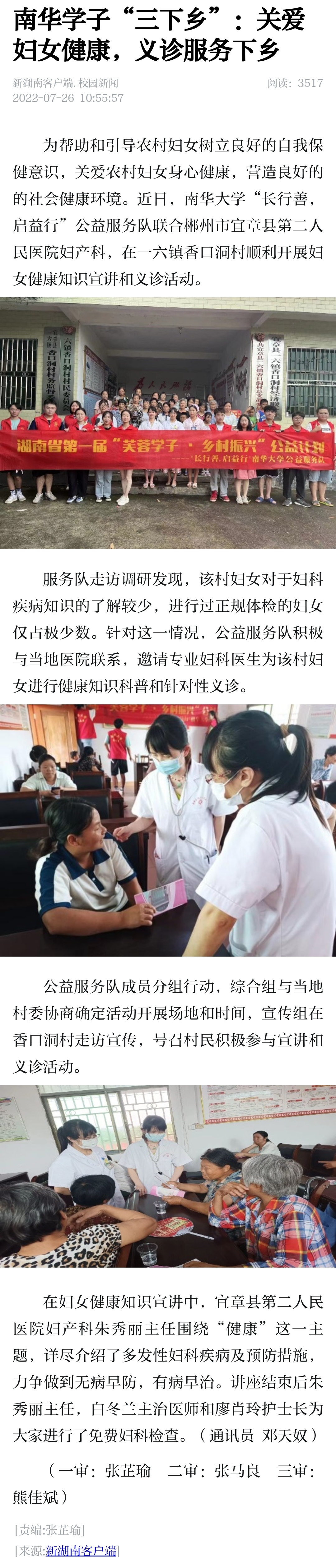 【新湖南】南华学子“三下乡”:关爱妇女健康,义诊服务下乡