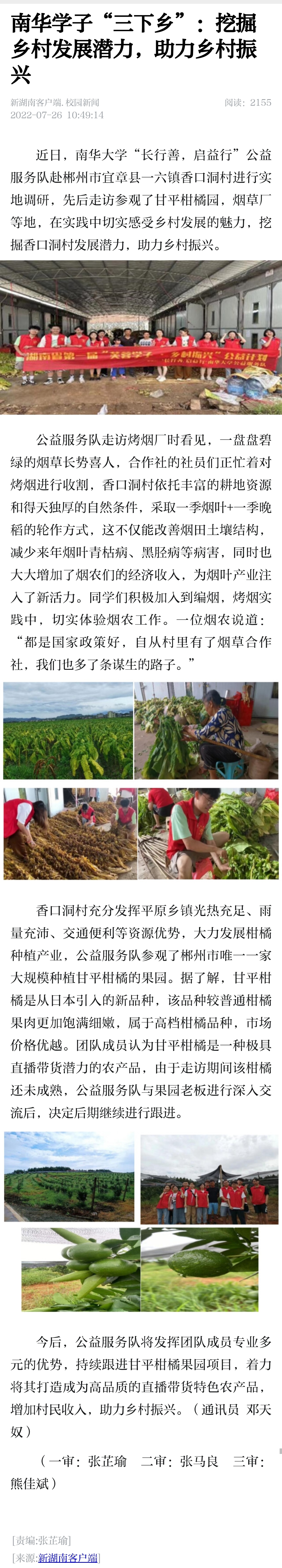 【新湖南】南华学子“三下乡”:挖掘乡村发展潜力,助力乡村振兴