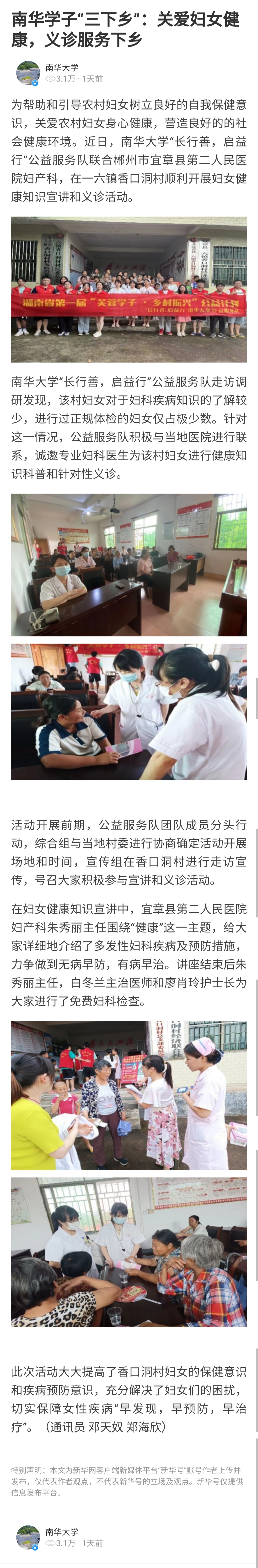 【新华网】南华学子“三下乡”:关爱妇女健康,义诊服务下乡