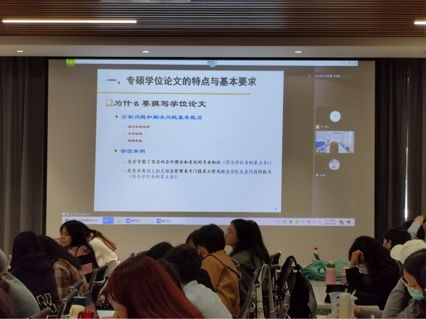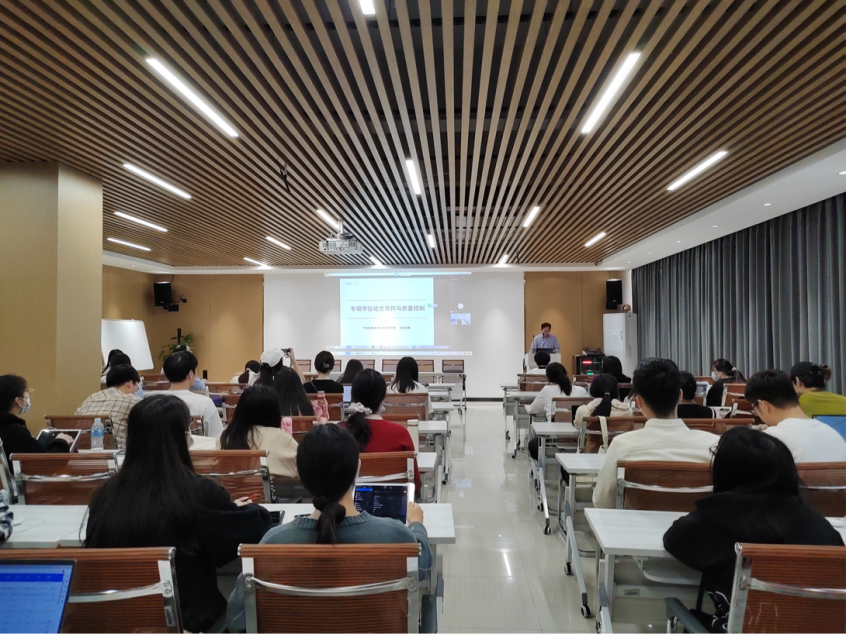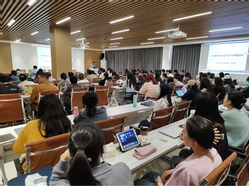 最后,徐教授对我院师生提出了专硕论文的质量控制与评价的指导意见,以亲眼所见的种种案例指明了论文审阅的过程中常见的问题,警醒、提示了我院师生应当注重论文质量控制。