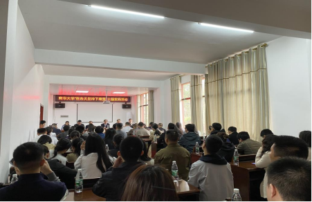 活动开始之前,80余位师生学子共聚会堂召开了一场简短生动的植树活动动员会。