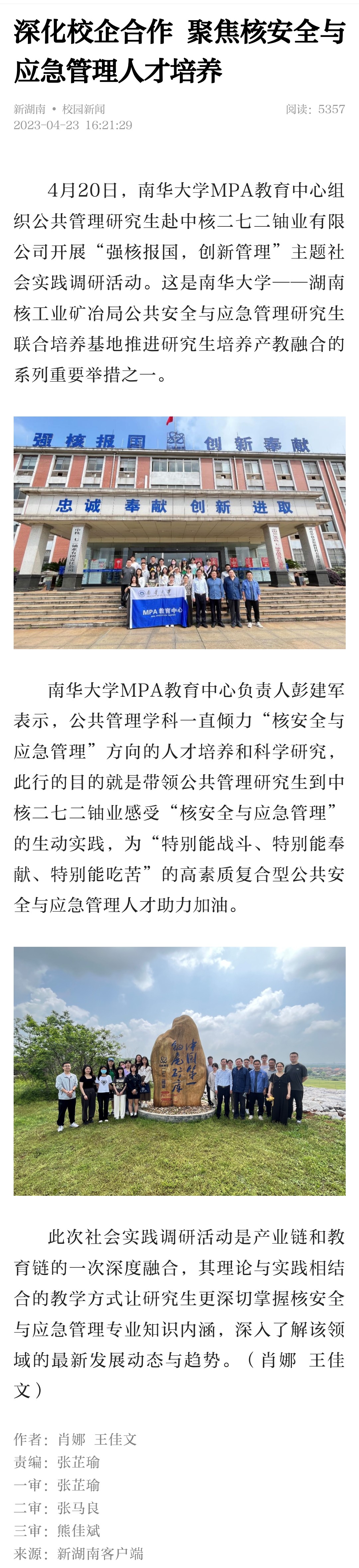 【新湖南】深化校企合作 聚焦核安全与应急管理人才培养