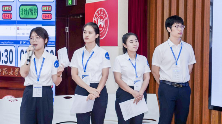 舞台上,我校队员案例分析逻辑严密、PPT陈述流畅自然、提问环节镇定自若,从容应对来自对方选手、观众和评委的诸多专业且尖锐的问题。在这一系列的过程中展示出了过硬的快速反应能力、分析应答能力、团队合作能力,激情盎然的论证表现与整齐团结的团队风貌,感染着每一位观众和评委,现场气氛热烈。