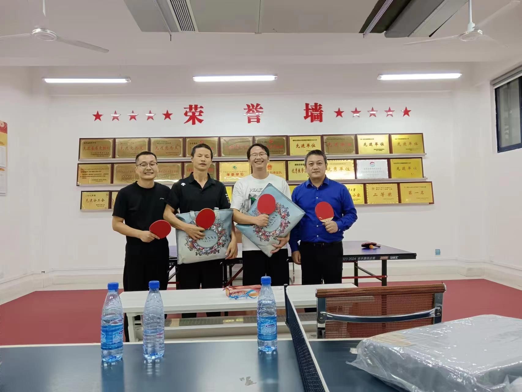 9月24日上午,为弘扬"亚运"精神,展现教职工良好精神风貌,在中秋国庆佳节和杭州亚运会到来之际,beats365唯一官方网站教职工乒乓球赛在南华大学雨母校区崇义楼306活动室举办。参加此次活动的有校工会主席潘本衡、校工会副主席曾艳,院党委书记胡海波、院长李玉琼,副院长刘保平、陈鸣,办公室主任邹国球,工商管理系副主任曾经莲,应用经济系副主任刘培青,管理科学与工程系支部副书记李小莉及教职工们。