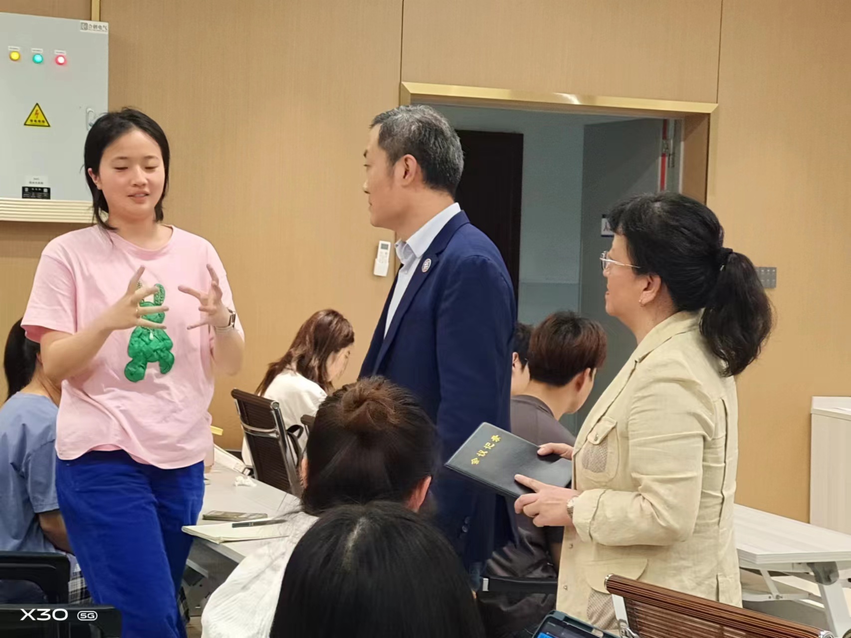 讲座结束后,张保善总经理与前来提问的学生亲切交流,并分享了国际展会中的谈判技巧和工作中的经验。