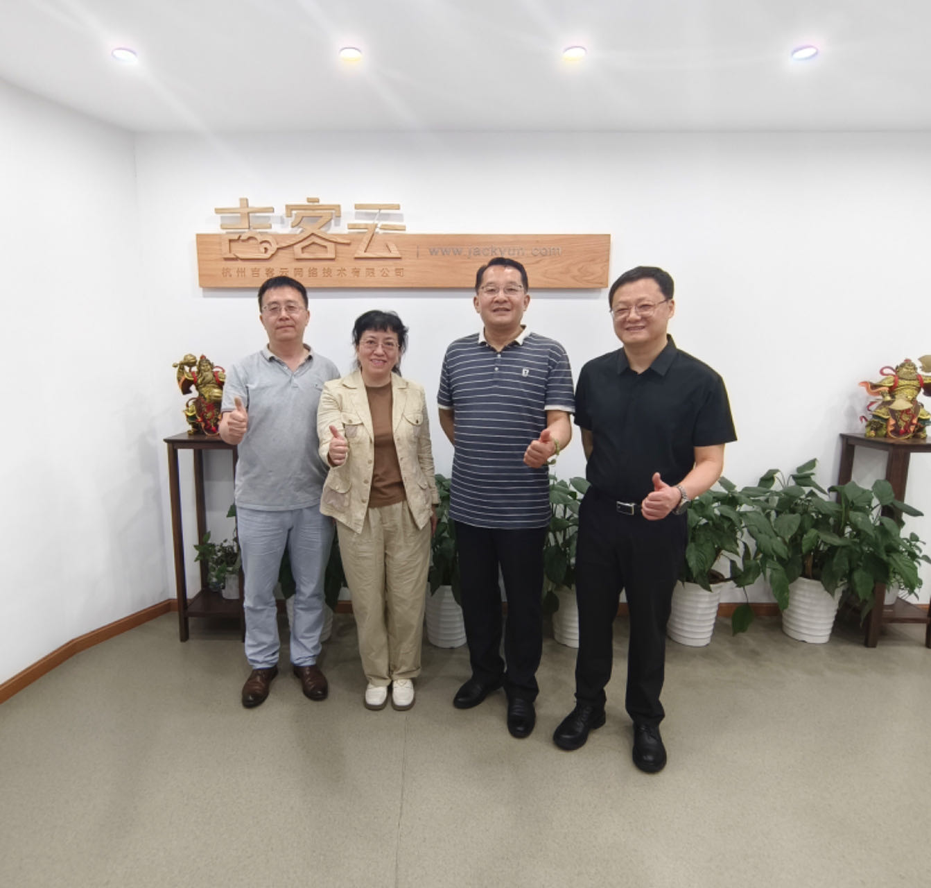 李玉琼一行先后走访了杭州工猫科技有限公司、杭州笛佛软件有限公司、杭州吉客云网络技术有限公司。93级管理专业校友、杭州工猫科技有限公司联合创始人兼法务总监秦月葆,99级管理专业校友、笛佛软件有限公司副总经理张巨松分别陪同李玉琼一行参观了公司总部,并详细介绍了公司的发展历程、业务范围和未来发展规划。