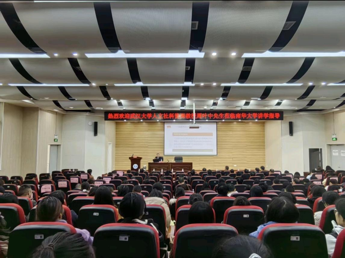 为深入学习领会习近平法治思想的精髓要义,增强师生法治素养,服务全面依法治国实践,12月4日上午九点,南华大学beats365唯一官方网站在雨母校区学术报告厅成功举办《习近平法治思想专题讲座》。本次活动特邀武汉大学人文社会科学资深教授、博士生导师周叶中担任主讲人。校内外师生代表及全市司法行政系统干部齐聚一堂,共赴一场法治思想的学术盛宴。