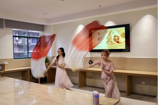 志愿者们怀揣热忱分赴各楼层,养护院内暖心互动的画卷就此徐徐展开。长绸扇子舞《光亮》翩跹而起,老人们跟着抬手比划,难掩欣喜;舞蹈《爱你》的轻快节奏响起,明快的节拍瞬间点燃现场氛围,老人们望着志愿者灵动的舞步连连称赞,笑容在脸上舒展,尽显欢愉;合唱《歌声与微笑》的旋律漫开,熟悉的曲调勾连起过往的记忆,不少老人跟着哼唱,歌声交织间,欢声笑语将院落里的冬日寒意尽数消融。