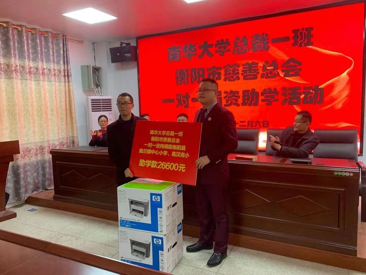 结业典礼后,总裁1班学员代表们携手慈善总会走进衡阳县曲兰镇中心小学,开展一对一捐资助学活动