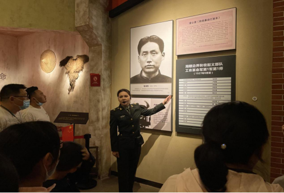 第一站:三班全体师生人员抵达文家市秋收起义纪念馆,整个纪念馆都比较安静,没有了喧嚣,没有干扰,适合目前的参观。三班全体师生认真聆听讲解员的解说以及观看宣传视频。