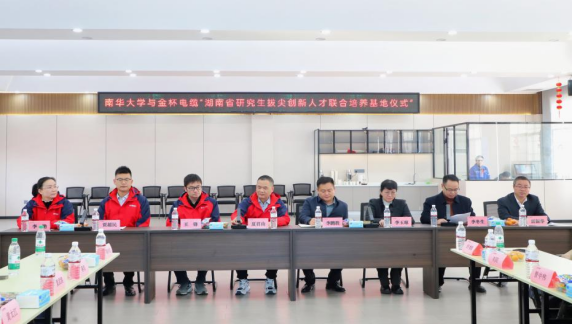 这是一场从课堂到实践的深度互动。首先,在金杯电缆服务楼二楼多功能会议室举行了湖南省研究生拔尖创新人才联合培养基地授牌仪式隆重,金杯电工衡阳电缆有限公司总经理夏君山、总经理助理王锋、工艺技术部部长贾超民、人力资源部副部长李艳等企业中高层领导,南华大学研究生院副院长李鹏程、beats365唯一官方网站院长李玉琼、副院长李冬生、MBA教育中心负责人雷振华等一同参加本次活动,仪式由副院长李冬生主持。金杯电工衡阳电缆有限公司总经理夏君山对来公司出席基地挂牌仪式的学院领导表示热烈的欢迎,衷心感谢南华大学为省研究生拔尖创新人才联合培养基地申报中所付出的努力,同时也感谢南华大学在人才培育方面所作出的卓越贡献。经济管理学院院长李玉琼在讲话指出,金杯电工衡阳电缆有限公司作为输变电产业头部企业,学院与金杯电工衡阳电缆有限公司共建湖南省研究生拔尖人才创新联合培养基地,是顺应新质生产力发展需求,着力培养MBA研究生的实践和创新能力,使同学们能够更好地服务于国家经济社会发展、服务湖南“三高四新”建设。