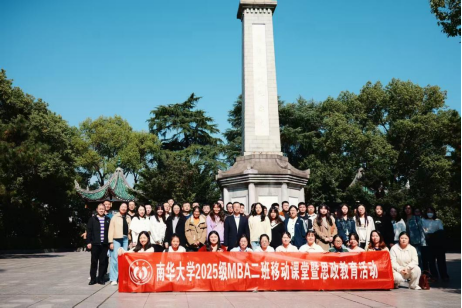 为深化产教融合、传承红色基因并筑牢理想信念根基,南华大学MBA教育中心于11月16日,组织2025级MBA一班、二班全体学员开展“探秘现代制造业卓越运营与战略创新+瞻仰抗战纪念碑厚植家国情怀”主题移动课堂暨思政教育活动。