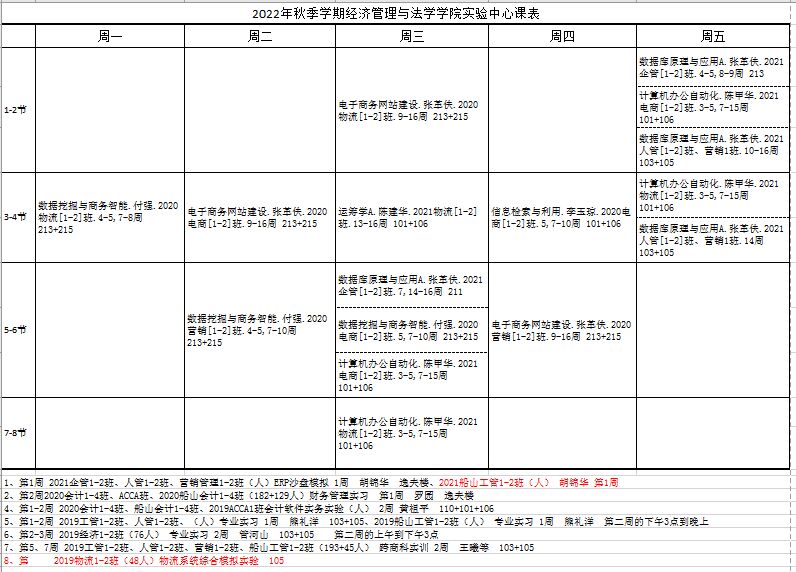 2022年秋季学期课表