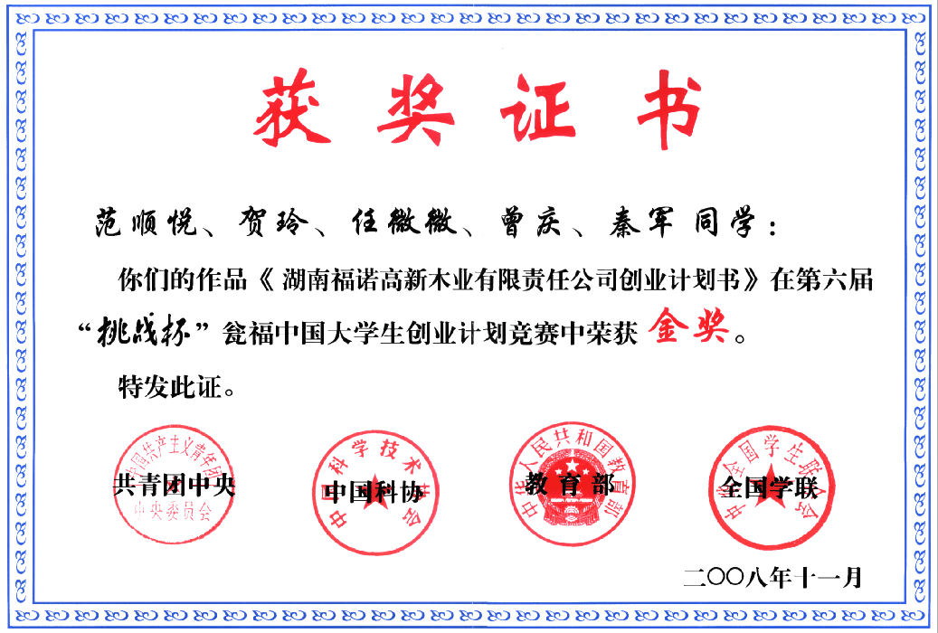 我院学生在第六届“挑战杯”竞赛中荣获金奖